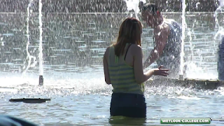 girls. Sexy girls playing in a fountain. In summer, girls wear white